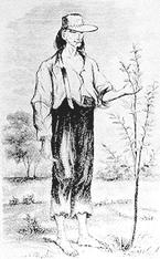 He was also a protector of wildlife and regarded by Native Americans as a great medicine man. Model: Chapman's generous spirit. If the world is divided into two kinds of people, givers and takers, Johnny Appleseed was a giver. He never cared about making money. He just wanted to share, and he found something good to share: red, rosy apples. What will you find to share? March 11 - John Chapman, better known as Johnny Appleseed. Today is Johnny Appleseed Day, and the 150th anniversary of Johnny Appleseed's death, in Allen County, Indiana, on March 11, 1847. Chapman planted countless orchards througout rural America and as far west as the Ohio Valley. He was also a protector of wildlife and regarded by Native Americans as a great medicine man. Model: Chapman's generous spirit. If the world is divided into two kinds of people, givers and takers, Johnny Appleseed was a giver. He never cared about making money. He just wanted to share, and he found something good to share: red, rosy apples. What will you find to share? |